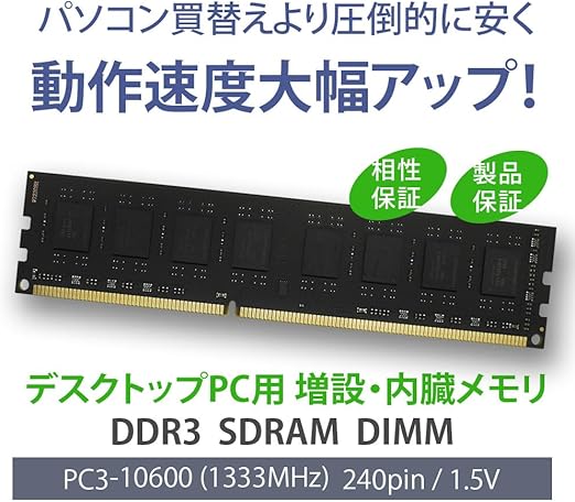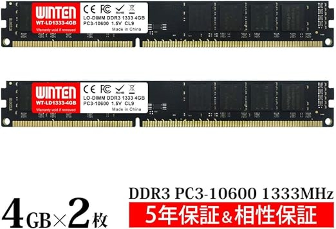 WINTEN デスクトップPC用メモリ DDR3-1333 8GB(4GB×2枚) WT-LD1333-D8GB 240Pin CL9 1.5V DIMM SDRAM 内蔵メモリー 増設メモリー【5年保証・相性保証】6149 a | PCBASE