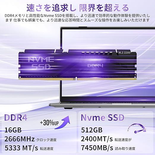 【超パワフルCPU!超大容量メモリー】 最新の第11世代インテル Core i7 1185G7 プロセッサーを搭載したゲーミングノートパソコン。高速かつ静音なCPU。パソコンノート i5 シリーズと比較して、1185G7 パソコン ノートのプロセッサーは4コア8スレッドを採用し、最大周波数4.8GHzに達します。インターネット閲覧、ビデオ編集、ゲームなどのタスクを処理する際、i5 シリーズよりも40%速く、スムーズな動作を実現します。【ストレージ】15.6インチ ノートpcは大容量の16gb D
