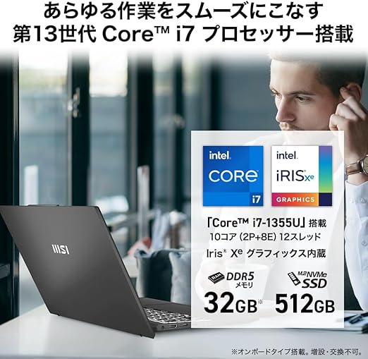 【CPU】Core i7-1355U 【GPU】インテル Iris Xe グラフィックス 【メモリ】32GB 【SSD】512GB