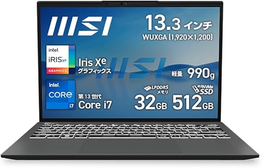 【超軽量990g・第13世代Core i7搭載】MSIビジネスノートPC Prestige13 メモリ32GB/SSD512GB/13.3インチ WUXGA/Core i7-1355U/Windows 11 Home/Prestige-13-A13M-5023JP a