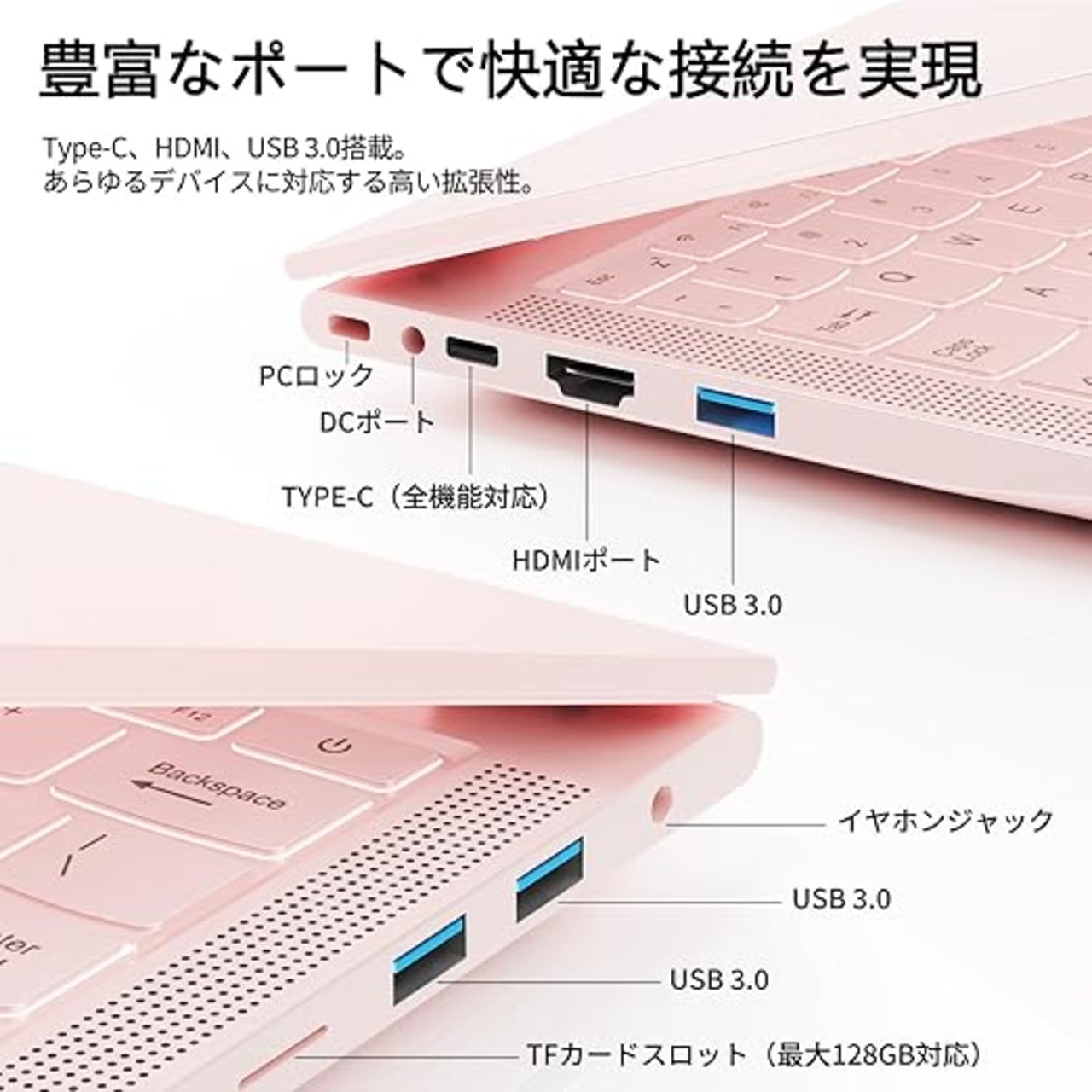 【おしゃれな淡いサクラピンクデザイン × 高精細2K IPSディスプレイ】柔らかな淡いサクラピンクのボディに、14インチ2160×1440の高解像度IPSディスプレイを搭載。鮮やかな映像と広視野角を提供するIPSパネルは、非光沢仕上げにより目の疲れを軽減します。スタイリッシュでユニセックスなデザインは、学生、ビジネスパーソン、家庭用など幅広いシーンで活躍します。