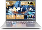 VETESA ノートパソコン 16インチ 2.5K QHD 240Hz 12世代N95 最大3.4GHz DDR4 32GB 512GB SSD Windows11 Pro対応 MS Office 2019搭載 ノートPC 高速放熱静音 Webカメラ/高速5GWiFi/TFカードスロット/miniHDMI/テンキー付き 指紋認証 Laptop a
