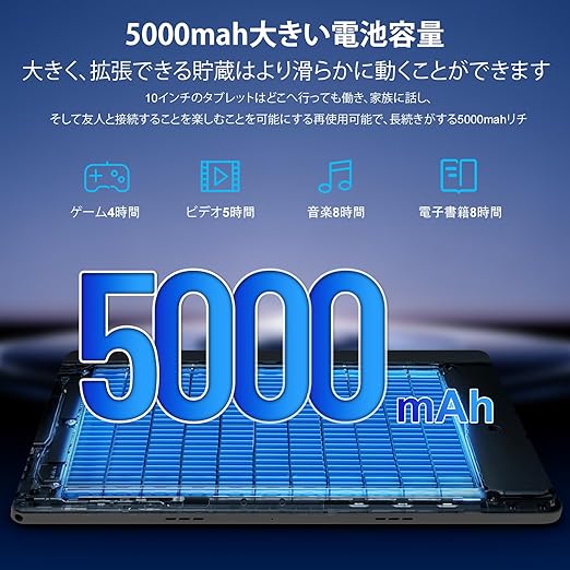 【お得なタブレットセット・幅広い使い道】FancyDay タブレットは、Bluetoothキーボード、ヘッドフォン、タッチペン、ワイヤレスマウス、折りたたみ式保護ケースを付き、さらに8コアプロセッサーと14GBの大容量RAMを搭載しています。この組み合わせにより、タブレットとノートパソコンモードを簡単に切り替え、効率的なモバイルワークを実現します。複数のアプリを同時に開いてもスムーズに動作し、作業やゲームも快適にこなせます。Bluetoothキーボードで快適なタイピングが可能で、ヘッドフォンでク