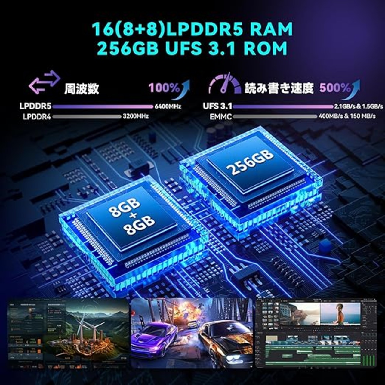 高性能Dimensity 7050タブレット8.4インチ、6軸ジャイロ搭載:FPad7タブレットは、Dimensity 7050プロセッサーを搭載し、最先端の6nmプロセスを基盤にしたオクタコアCPUアーキテクチャを採用しており、2つの高性能ARM Cortex-A78コアと6つの省エネルギーARM Cortex-A55コアを組み合わせています。最大2.6GHzのクロックスピードを誇ります。Antutuテストスコアで520,000点以上を記録しており、G68 GPUとの組み合わせにより、ゲームや