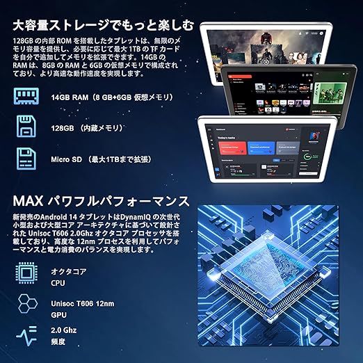 タブレット2025新登場Android14タブレット10インチWiFiモデル14GB+128GB+1TB拡張 4G LTE通話+5G/2.4G WiFi アンドロイドタブレット8コアCPU T606 8000mAh Type-C 1280*800 IPS画面13MP+8MPカメラ BT5.0 GMS/PSE認証済/ギフトに最適/子供用 2in1タブレットキーボード/マウス/保護ケース/フィルム a | PCBASE
