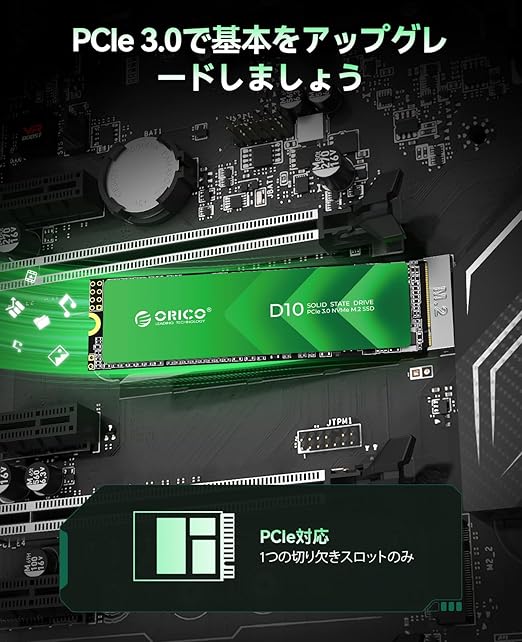 ORICO D10 256GB SSD NVMe1.4 M.2 Type 2280 PCIe Gen3×4 最大読込:2400MB/s (R:2400MB/s、W:1700MB/s) 内蔵SSD 3D TLC NANDフラッシュ搭載 高耐久 メーカー 5年保証 a | PCBASE