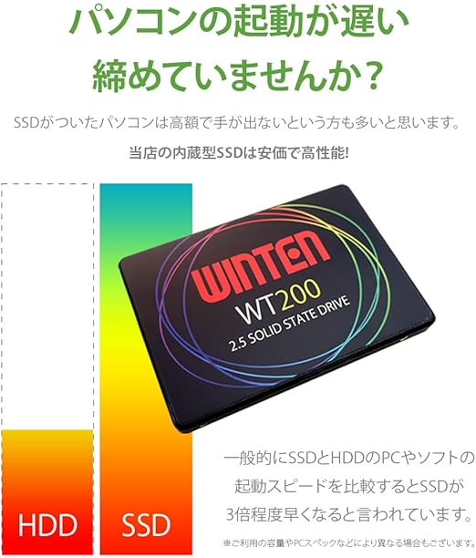 【安価で高品質なSSD】高品質ながら安価な価格を実現しました。2007年からPC機器を企画販売するウィンテンの自社ブランドだから3年間という長期保証に対応し、徹底した品質管理と安全チェックにより、安心の製品をお客様へご提供いたします。