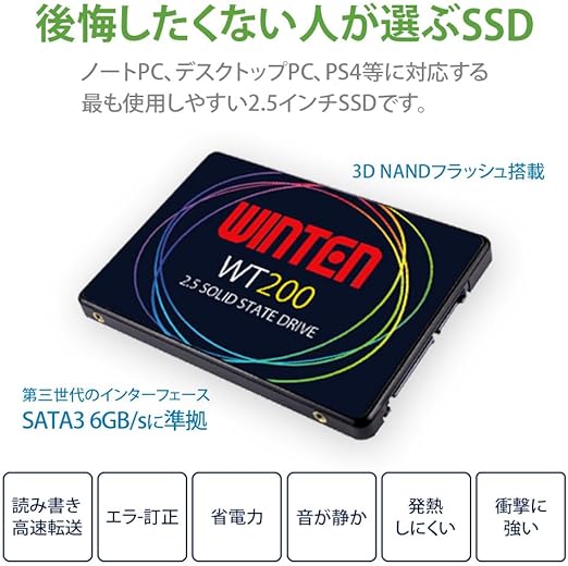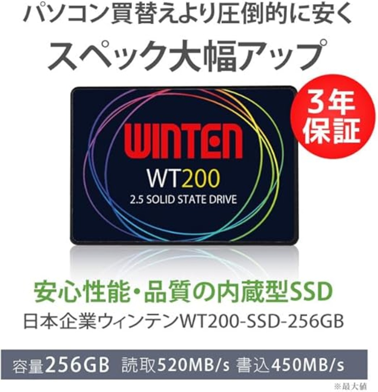 WINTEN SSD 256GB 3年保証 WT200-SSD-256GB 内蔵型SSD SATA3 6Gbps 3D NANDフラッシュ搭載 デスクトップパソコン ノートパソコン PS4動作確認済 2.5インチ エラー訂正機能 省電力 衝撃に強い 2.5inch 5589 a | PCBASE