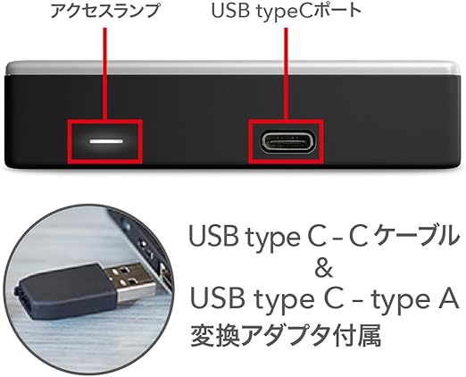 接続規格/ドライブフォーマット形式:USB-C対応、USB 3.0対応/ NTFS