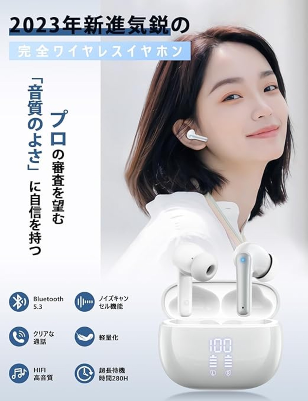 イヤホン bluetooth ワイヤレスイヤホン 【2025新春のモデル】 HUIFU ブルートゥース イヤホン Bluetooth5.3 LEDディスプレイ ぶるーとぅーすイヤホン 小型/軽量 長時間再生 自動ペアリング タッチコントロール Type-C充電 IPX7防水 片耳/両耳 iPhone/Android適用 WEB会議通勤/通学/スポーツ/音楽/ゲーム (ホワイト) a