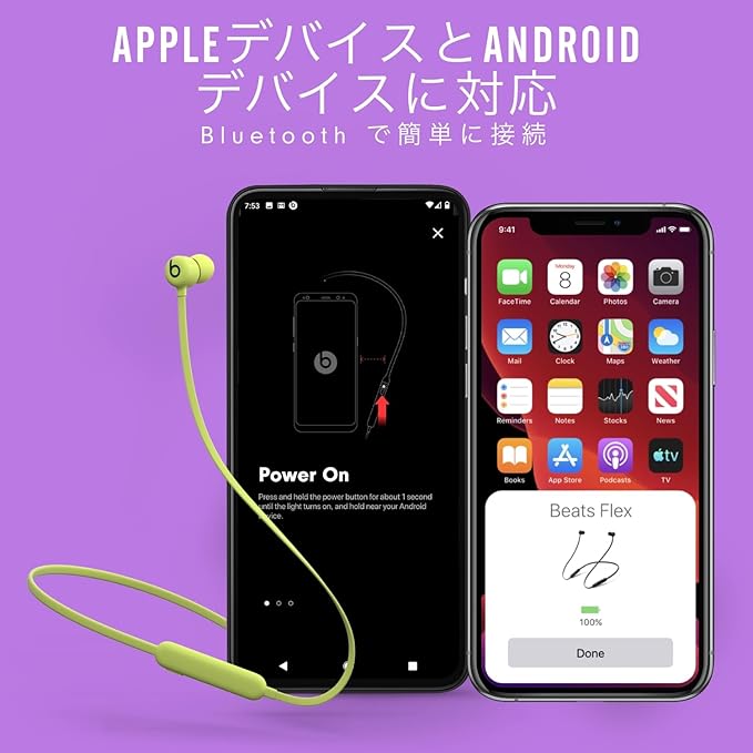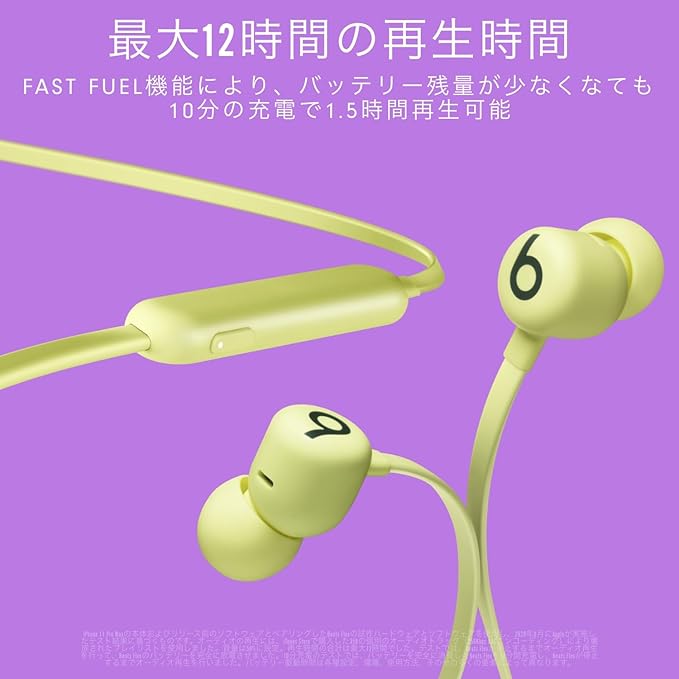 Beats Flexワイヤレスイヤホン ? Apple W1ヘッドフォンチップ、マグネット式イヤーバッド、Class 1 Bluetooth、最大12時間の再生時間 - イエロー a | PCBASE