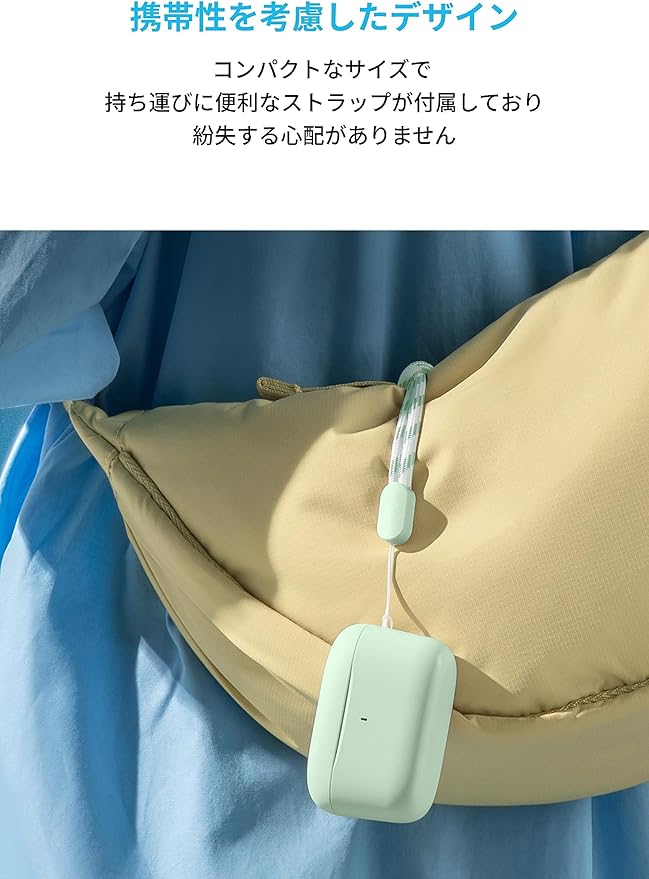 持ち運びに便利なミニマルなデザイン:ケースを含めて、わずか41.3gで小さく軽量です。ストラップが付属しており、アクセサリーのようにバッグに付けることも可能で持ち運びに最適です。