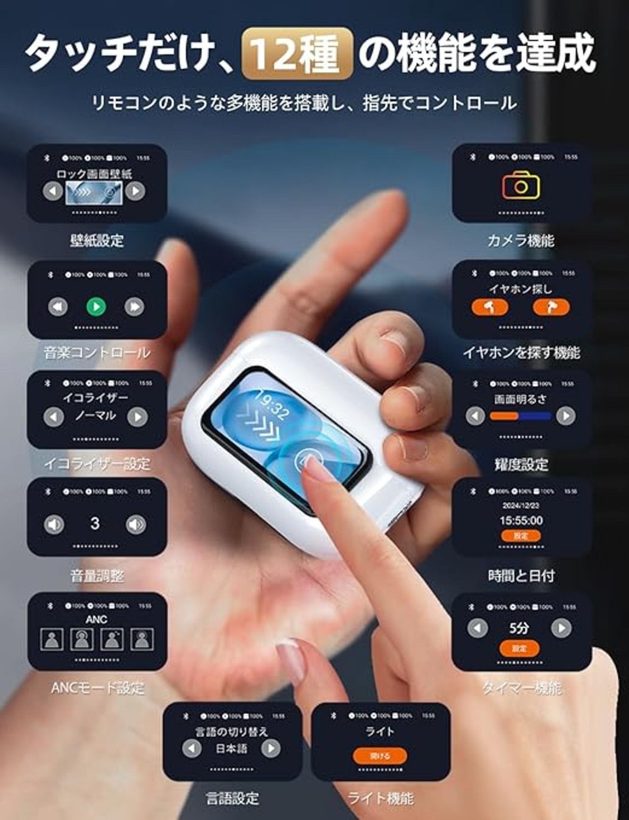 ワイヤレスイヤホン革新の狼煙を上げるAIFENGは、いま登場!スマートタッチディスプレイを搭載した【スマートANC bluetooth イヤホン】が日本で発売された!独自開発のノイズキャンセリングチップにより、ブルートゥース イヤホンのノイズ低減深度は36dBと高く、適切なサイズのイヤーピースを使用すれば、ANCイヤホンのノイズ低減深度は45dBにまで跳ね上がます!アクティブに有害なノイズをフィルターすると同時に聴覚を保護するので、リズムの世界に没頭させてくれます。【画一的なノイズキャンセリング