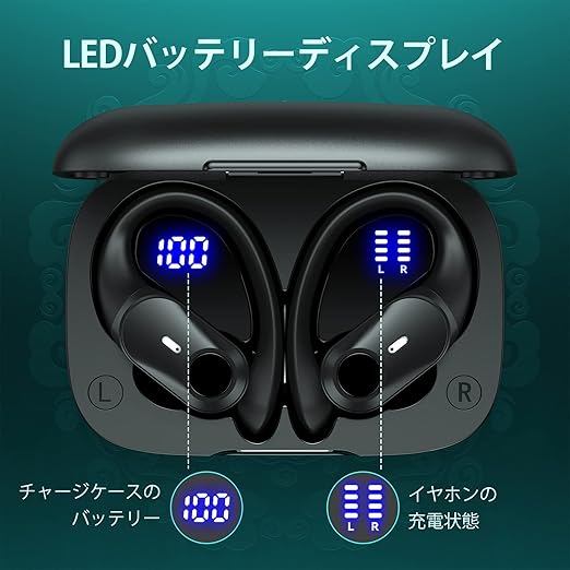 【ワイヤレス充電&LEDディスプレイ】イヤホン ワイヤレスは大容量600mAhの充電ケースがついて、QIとType-C二つの充電方法もサポートしています。フル充電で最大連続約8時間音楽を楽しめます。ケース併用て40時間再生できます。バッテリーが長持ちなので、通勤通学はもちろん、飛行機や新幹線等の長距離移動でも途中でバッテリー切れの心配なく使用できます。LEDディスプレイも付き、高精細と高級感溢れて、ケースのバッテリー残量は左ディスプレイに数字で表示され、イヤホン bluetooth 耳掛けを充電