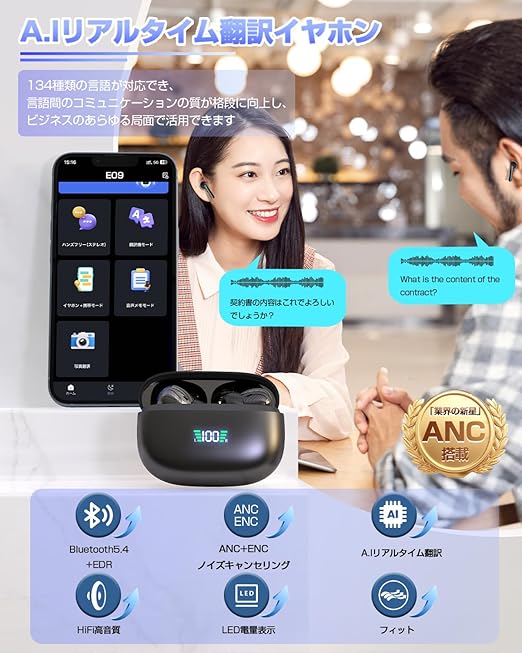 「業界の新星」A.Iリアルタイム翻訳 ワイヤレスイヤホン bluetooth 5.4 ANC ノイズキャンセリング イヤホン ハンズフリー通話 CVC8.0通話ENCノイズ除去 hi-fi AACコーデック 小型 bluetooth イヤホン タイプc 充電保護 長時間再生 タッチセンサー 左右分離型 カナル型 フィット感 通勤/通学/散歩 WEB会議/テレワーク/ZOOM/仕事電話 a | PCBASE