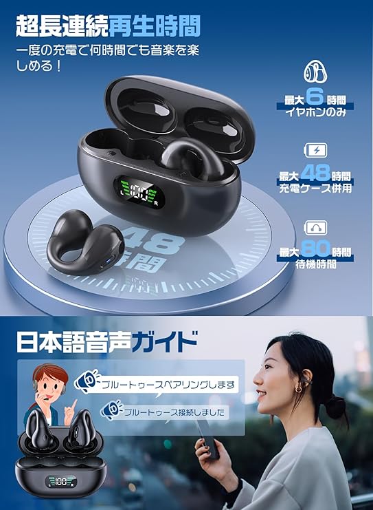 イヤホン bluetooth ワイヤレスイヤホン 骨伝導イヤホン「2024音質強化?イヤーカフ型の魅力」オープンイヤー イヤホン イヤーカフ イヤホン 耳を塞がないイヤホン 音漏れ抑制 圧迫感ゼロ フィット感 超長時間連続再生 Hi-Fi音質 ENC CVC8.0通話 ノイズキャンセリング ハンズフリー通話 ぶるーとぅーす 高感度ボタン操作 Type-C急速充電 通勤/通学/スポーツ/ゲーム a | PCBASE