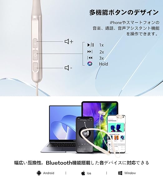 【2024新設計ネックバンド型・Bluetooth 5.3】Bluetooth イヤホン ネックバンド型 -HQP ワイヤレスイヤホン 首掛け 35時間再生 ブルートゥースイヤホン CVC8.0ノイズキャンセリング イヤホン Bluetooth ネックバンド Type-C急速充電 自動ペアリング ハンズフリー通話 IPX7防水 軽量iPhone/Android適用 オフホワイト a | PCBASE