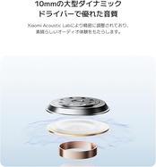 【10mmのダイナミックドライバーでパワフルなサウンド】10mmの大型ダイナミックドライバーは、Xiaomi Acoustic Labにより精密にチューニングされており、素晴らしいオーディオ体験をもたらします。そして5種類のプリセットイコライザーにより、豊かでパワフルかつ魅力的なサウ