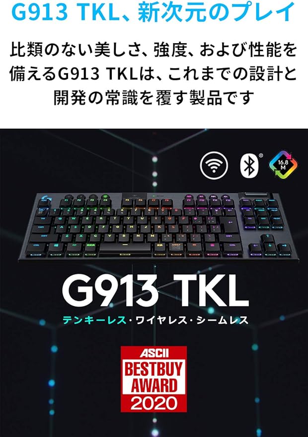 Logicool G(ロジクール G) ゲーミングキーボード テンキーレス ワイヤレス G913 TKL 薄型 GLスイッチ タクタイル 日本語配列 LIGHTSPEED 無線 Bluetooth 接続対応 LIGHTSYNC RGB G913-TKL-TCBK 国内正規品 a | PCBASE