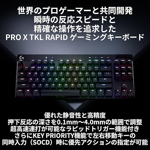 ラピッドトリガー搭載 プロフェッショナル向けの超高速レスポンスと信頼を備えた高精度の 「PRO X TKL RAPID」ゲーミングキーボード! ※Amazon.co.jp限定 壁紙ダウンロード付き