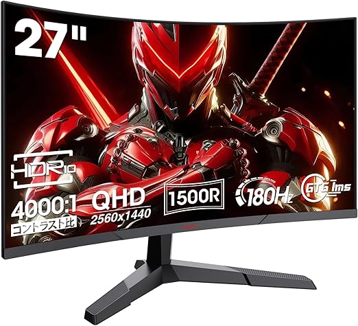 KOORUI ゲーミングモニター WQHD モニター 27インチ 湾曲モニター 180Hz 1ms(GTG) 1500R Adaptive Sync HDR 傾き調節 HDMI DP VESA 27E6QCA a | PCBASE