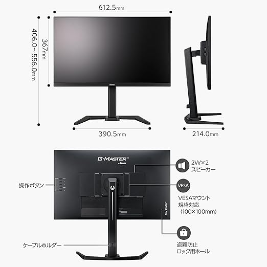 マウスコンピューター G-MASTER ゲーミング モニター ディスプレイ 27インチ 165Hz 0.8ms IPS方式 フルHD 高さ調整 縦回転 HDMI Displayport USBハブ 全ケーブル付 3年保証 国内サポート iiyama GB2770HSU-B5A a | PCBASE