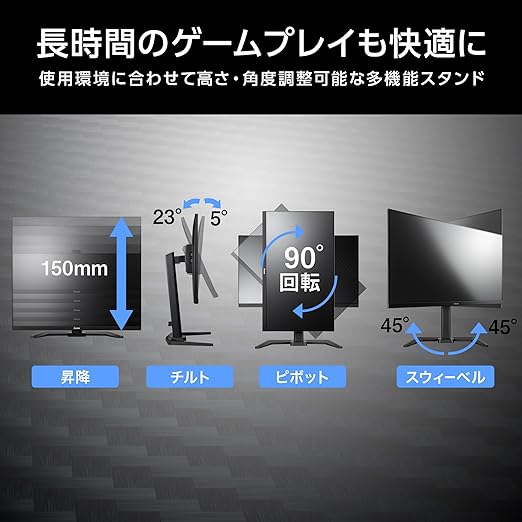 [画面]27インチ/IPS方式パネル(FAST IPS)/1920x1080 フルHD/ノングレア(非光沢)/リフレッシュレート最大165Hz /高速応答速度0.8ms (MPRT)対応