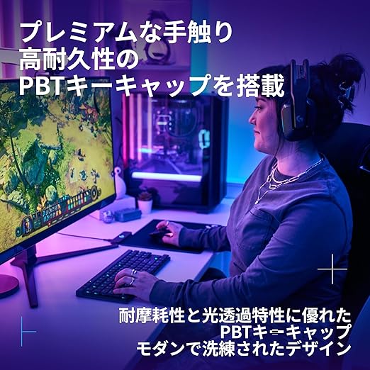 耐摩耗性に優れ、光透過特性を向上させる高品質な薄型PBTキーキャップを採用/静かな