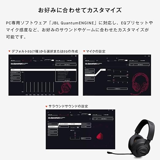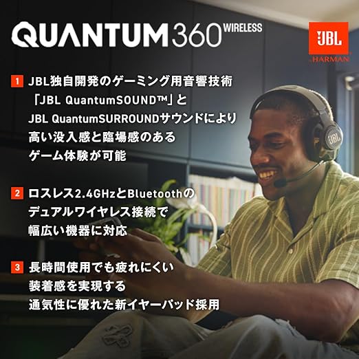 JBL QUANTUM 360 WIRELESS ゲーミングヘッドセット/低遅延 2.4GHz ワイヤレス Bluetooth/デュアルワイヤレス接続/着脱可能ボイスフォーカスブームマイク/ゲームチャットバランスダイヤル/JBLQTUM360BLK a | PCBASE