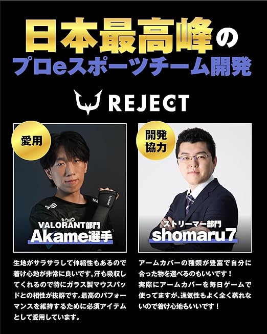 【プロ選手推奨】REJECT所属VALORANT部門のAkameやApex部門のKaronpeをはじめとして、トッププレイヤーも日常的に使用。元プロ選手・現ストリーマーのShomaru7による開発
