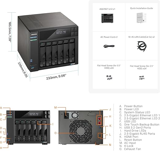 ASUSTOR ASUS子会社 NAS キット 6ベイ AS6706T Lockerstor 6 Gen 2 4xM.2 NvMe SSDスロット Intel Celeron N5105 クアッドコア 2x2.5GbE高速ポート DDR4 8GBメモリ HDMI 2.0b 搭載 10GbE拡張 メーカー3年保証 国内正規代理店品 a