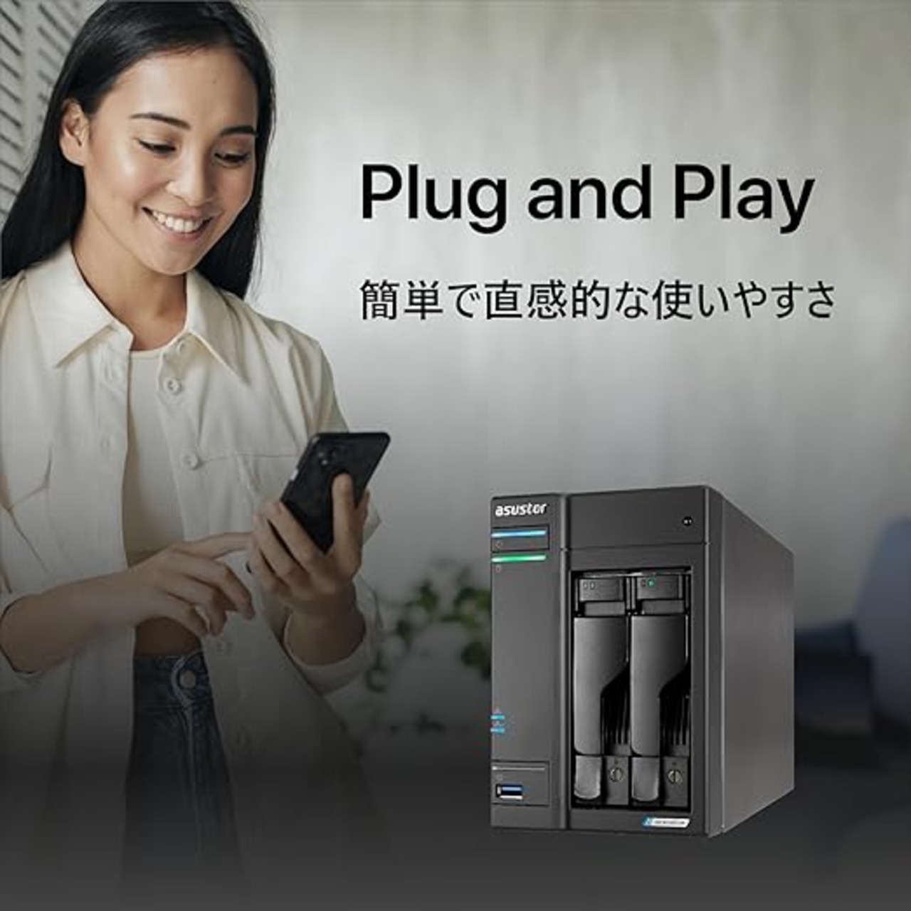 ASUSTOR ASUS子会社 NAS キット 2ベイ AS6702T Lockerstor 2 Gen 2 4xM.2 NvMe SSDスロット Intel Celeron N5105 クアッドコア 2x2.5GbE高速ポート DDR4 4GBメモリ HDMI 2.0b 搭載 メーカー3年保証 国内正規代理店品 a
