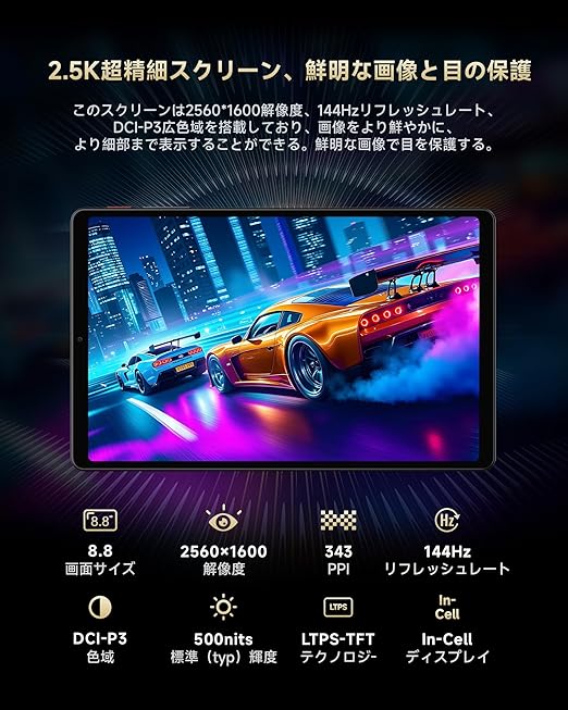 ALLDOCUBE iPlay 70 mini Ultra タブレット 8.8インチ Snapdragon7+Gen3 2560×1600解像度 144Hz高リフレッシュレート 20GB+256GB+1TB拡張 7300mAh PD20W デュアルスピーカーDTSサウンド 6軸ジャイロ WiFi6 BT5.4 WidevineL1 重力センサー 光センサー Androidタブレットアンドロイド a