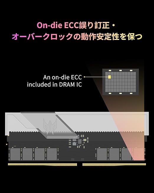 【最新のDDR5プラットフォーム】Acer Predator Vesta Ⅱシリーズ商品は厳選された高品質のDDR5 ICを使用しており、最大6000 MHzの次世代スピードを実現可能。DDR5 モジュールには、オンボード電源管理用集積回路(PMIC)が搭載され、前世代より電力分配が改善され、信号品位が向上し、雑音も少なくなります。