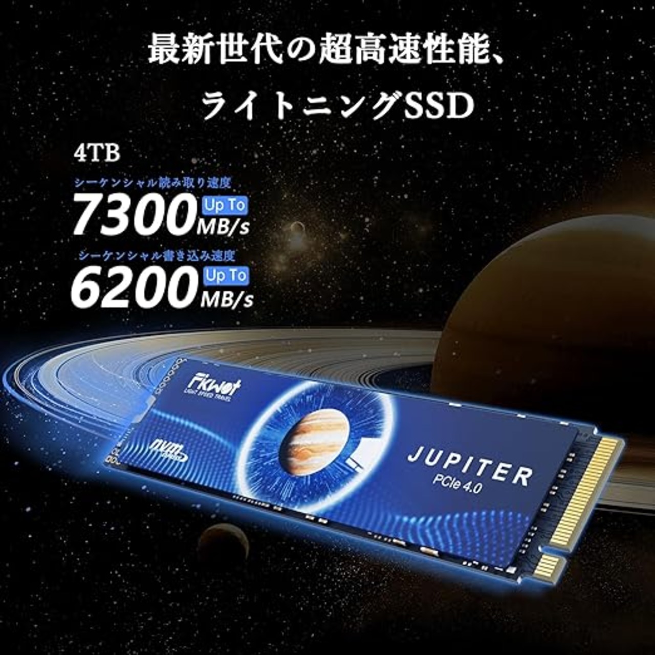 [トップパフォーマンス]: Fikwot FX991 M.2 SSD 4TBはNVMeプロトコルとPCIe Gen 4x4仕様を採用しており、最大読み取り速度 7300MB/秒、最大書き込み速度 6200MB/秒 に簡単に到達します。超高速のFX991 NVMe SSDは、パソコンのシステムとアプリケーションの応答を高速化し、作業効率を向上させます。