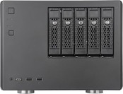 ドライブ状態を表示する2階調LED インジケーター付属のホットスワップ対応ドライブベイは、最大5基の3.5” または 2.5” SAS-12G* / SATA-6Gドライブに対応