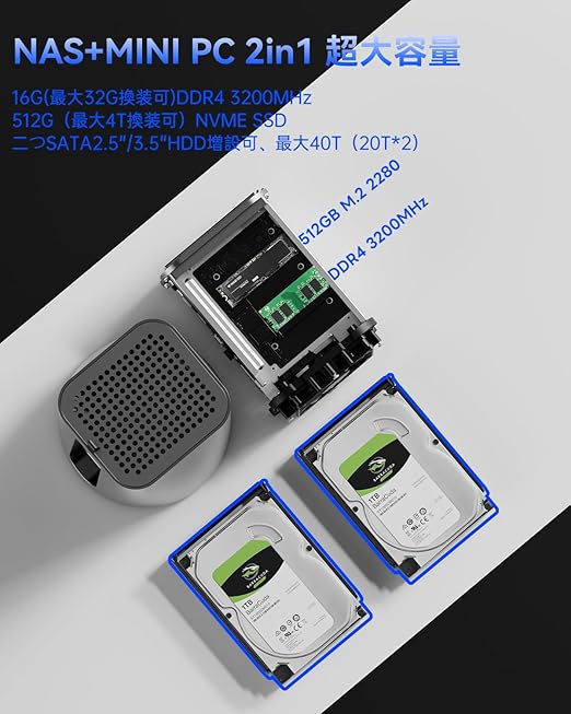 AOOSTAR R1ミニPC N150 Intel NAS 4C/4T 最大3.6GHz 動作安定mini pc (40TB)HDD拡張可 OS/RAM/SSD搭載なし M.2 NVMe 2280 SSD ソフトルーティング 二つファン 静音 2x2.5G 高速LAN Win11 Pro 低消費電力 4K/WiFi6/BT5.2 小型パソコン a | PCBASE