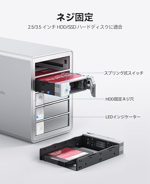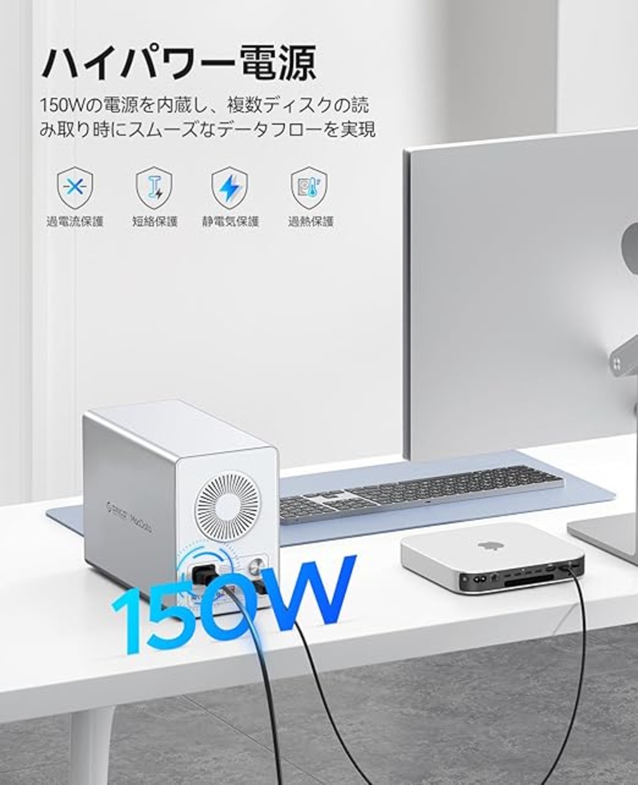 【心配のないストレージスペース】HDD ケースシングルディスクの最大容量は22TBまで、HDD ケース 5台の最大容量は110TBの大容量ストレージスペースを実現します。 容量不足を心配することなく、大規模なエンジニアリングプロジェクトや高解像度のビデオ映像、その他の膨大なデータのストレージニーズに簡単に対応できます。