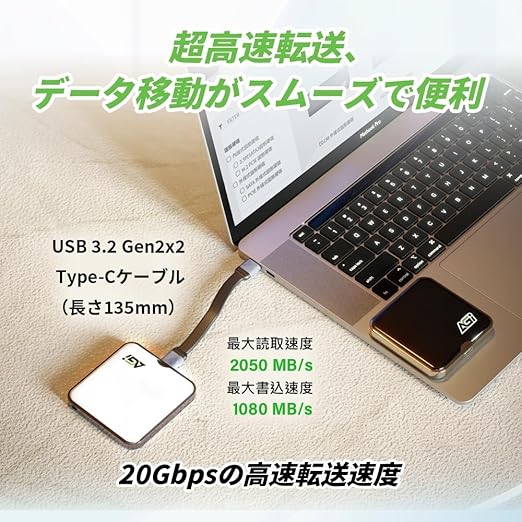 AGI 外付けSSD 1TB 白 磁気 読み取り最大 2050MB/秒 USB 3.2 Gen2x2 Type-C iPhone 15 Pro Max ProRes動画 直接保存 ポータブル スマートフォン EDM38 SSD 外付け a | PCBASE