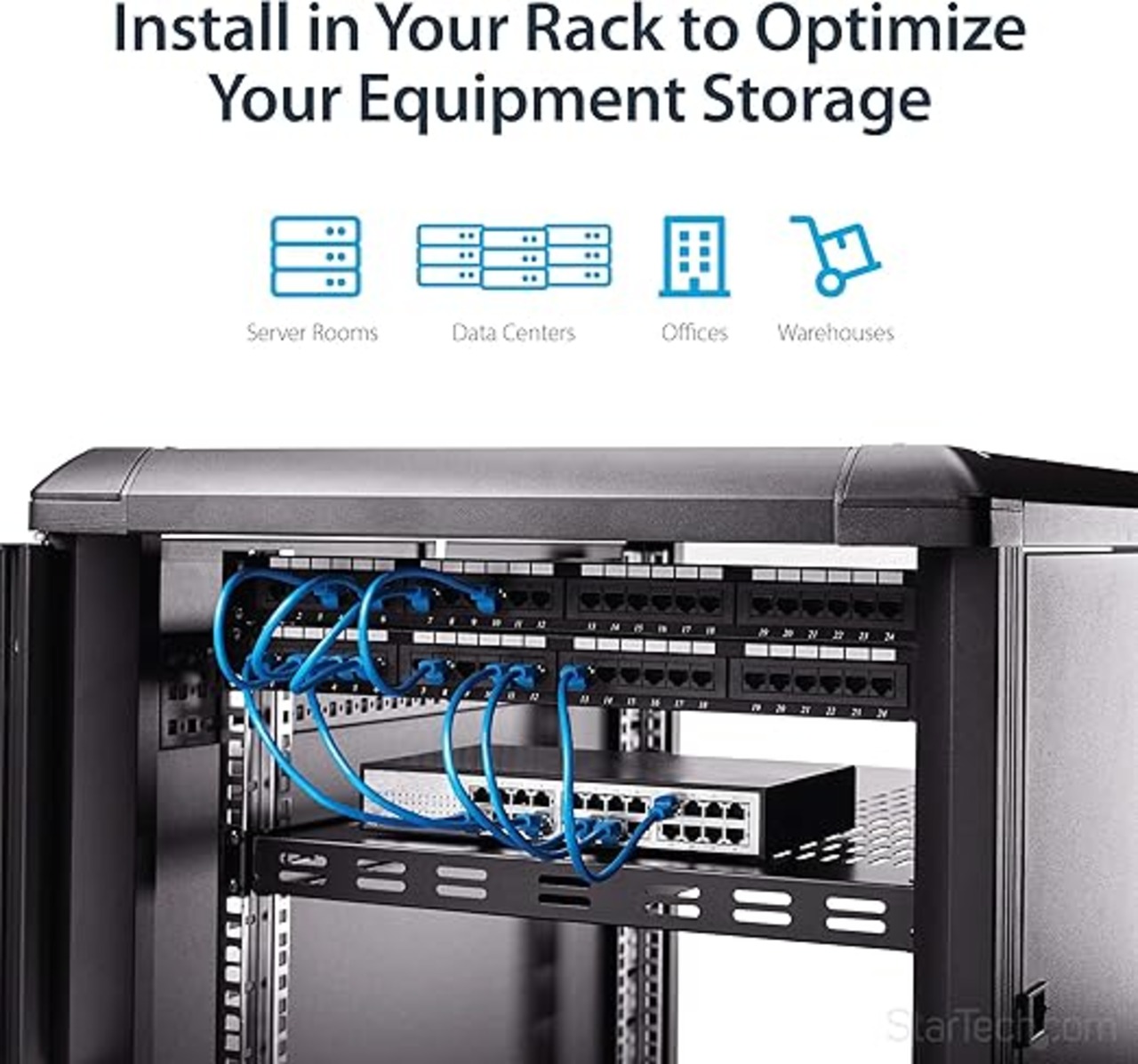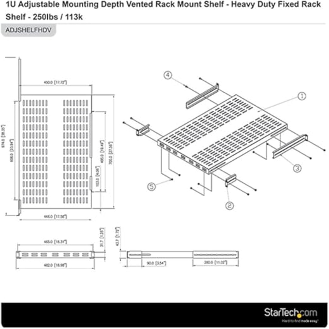 StarTech.com サーバーラック棚板/1U/放熱スリット付/耐荷重150kg/奥行き700mm/取付奥行き495〜974mm/19インチラック対応/AV、データ、ネットワーク機器収納用 ラックマウント サーバー シェルフ ADJSHELFHDV a | PCBASE