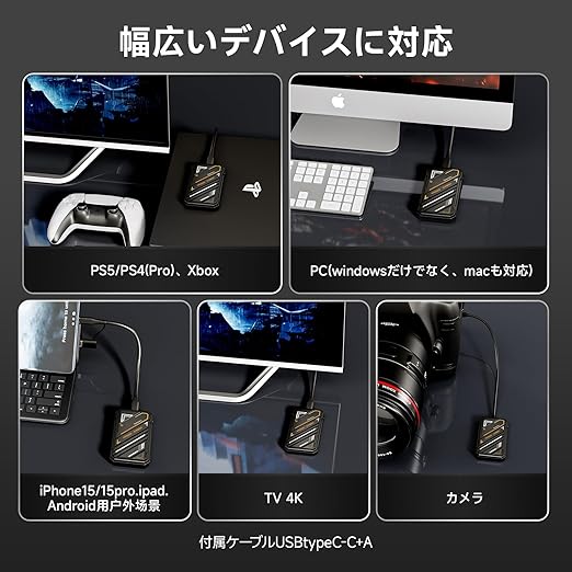 【より速いストレージで簡単に高パフォーマンスを実現&コンパクトなサイズ】この外付けSSDはUSB 4.0 40Gbpsで最大 3800MB/秒のシーケンシャル読み取りおよび最大 3700MB/秒のシーケンシャル書き込みの速度を実現し、容量はそれぞれ1TB/2TBより選択可能で、ゲーム、動画編集、コンテンツ作成、高い処理能力を必要とするエンジニアリングなど、高負荷の用途に最適です、※最大転送速度は当社環境による実測値であり、すべての環境において保証するものではありません、コンパクトのサイズ:11.