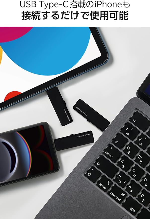 従来のUSB-Aポート搭載パソコンはもちろん、USB Type-Cポートを搭載したMacやiPhone、iPadなどでも、ケーブルやアダプターを別途購入することなく、接続するだけ