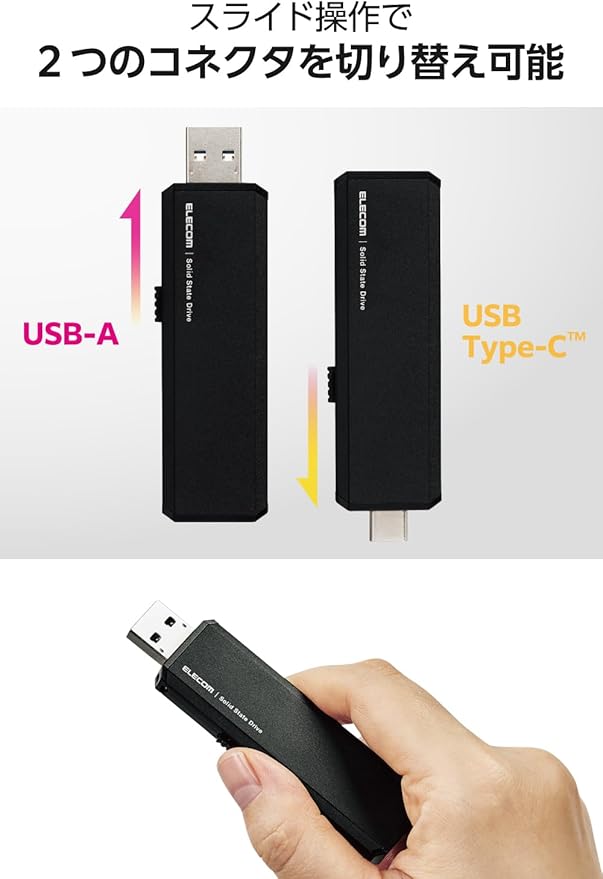 エレコム 外付けSSD 1TB USB3.2 (Gen2)対応 スライド式 Type-C/Type-A コネクタ iPhone/iPad 対応 ブラック ESD-EAWA1000GBK a | PCBASE