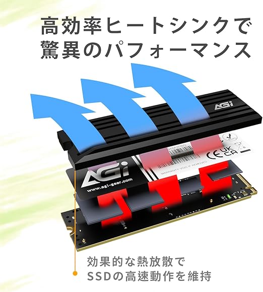 AGI AI838 内蔵 SSD 1TB PCIe Gen4×4 (最大読込: 7,400MB/s) PS5動作確認済み NVMe M.2 2280 DRAM Cache 3D NAND SSD ヒートシンク付き(書き込み速度5500MB/s) a | PCBASE