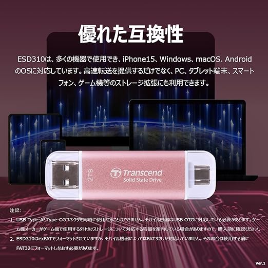 トランセンド ポータブルSSD 1TB 高速 最大1050 MB/s 超小型,軽量11g Type-A/Type-C 両対応 iPhone15&16対応/PS4/PS5 動作確認済 USB 10Gbps TS1TESD310C-E 【Amazon.co.jp限定】 a | PCBASE