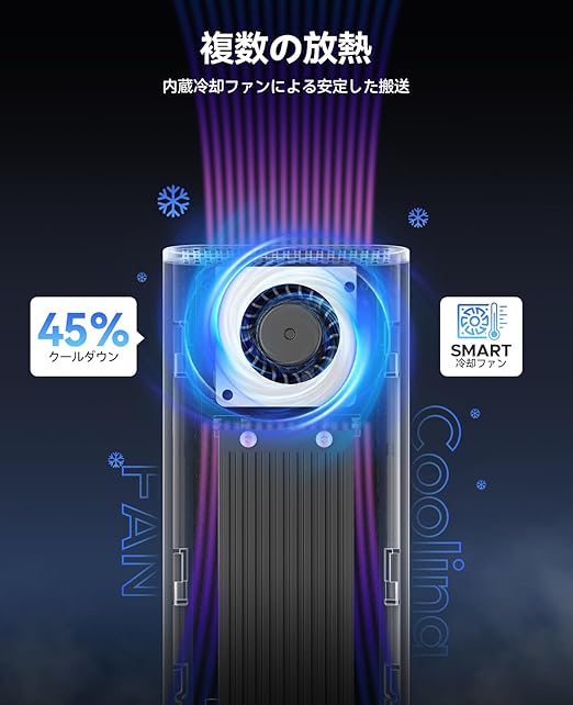 ORICO M.2 SSD 外付けケース 40Gbps 工具不要最新 USB4 M.2 NVMe SSDケース ファン内蔵の透明Thunderbolt 4 SSD ケース2230 2242 2260 2280(Mキーのみ)対応、USB4/3.2/3.0/2.0対応-TCM2U4 ブラック a | PCBASE