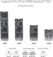 M.2 (2230/2242/2260/2280) PCIe NVM Express SSDをサポート