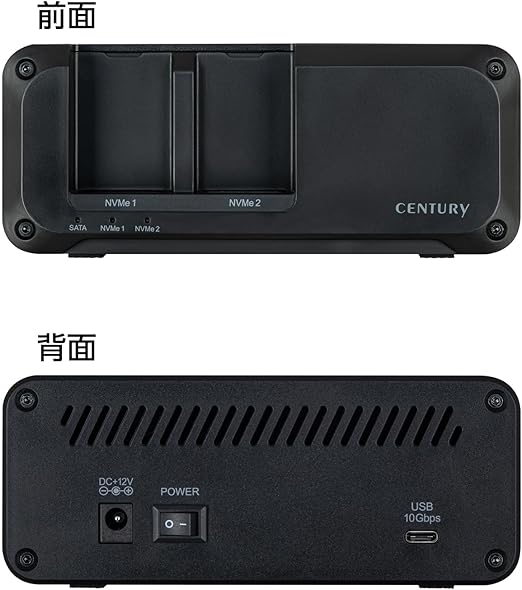 センチュリー 「裸族のお立ち台M.2ダブルスタンディングプラス」USB 10Gbps M.2 NVMe SSD×2 、SATA HDD/SSD×1 搭載可能クレードル CROSMDSP10G_FP a | PCBASE