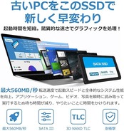 仕様:インターフェース:SATA 6Gbps (SATA III); シーケンシャル最大転送速度:560MB/s; シーケンシャルライト最大:500MB/s