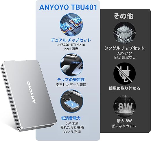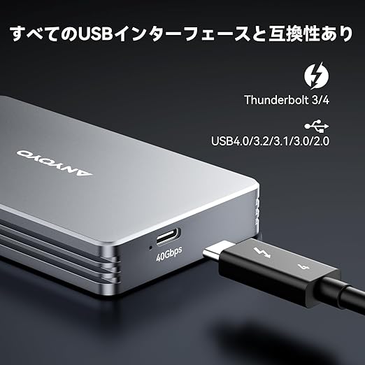 ANYOYO Thunderbolt 4/3 & USB4 M.2 PCIe 2280 M-KEY(B+M KEY)NVMe SSD 外付けケース ,40Gbps NVME SSD ケース , 最大2700MB/s ,アルミ合金製,USB-C接続 a | PCBASE